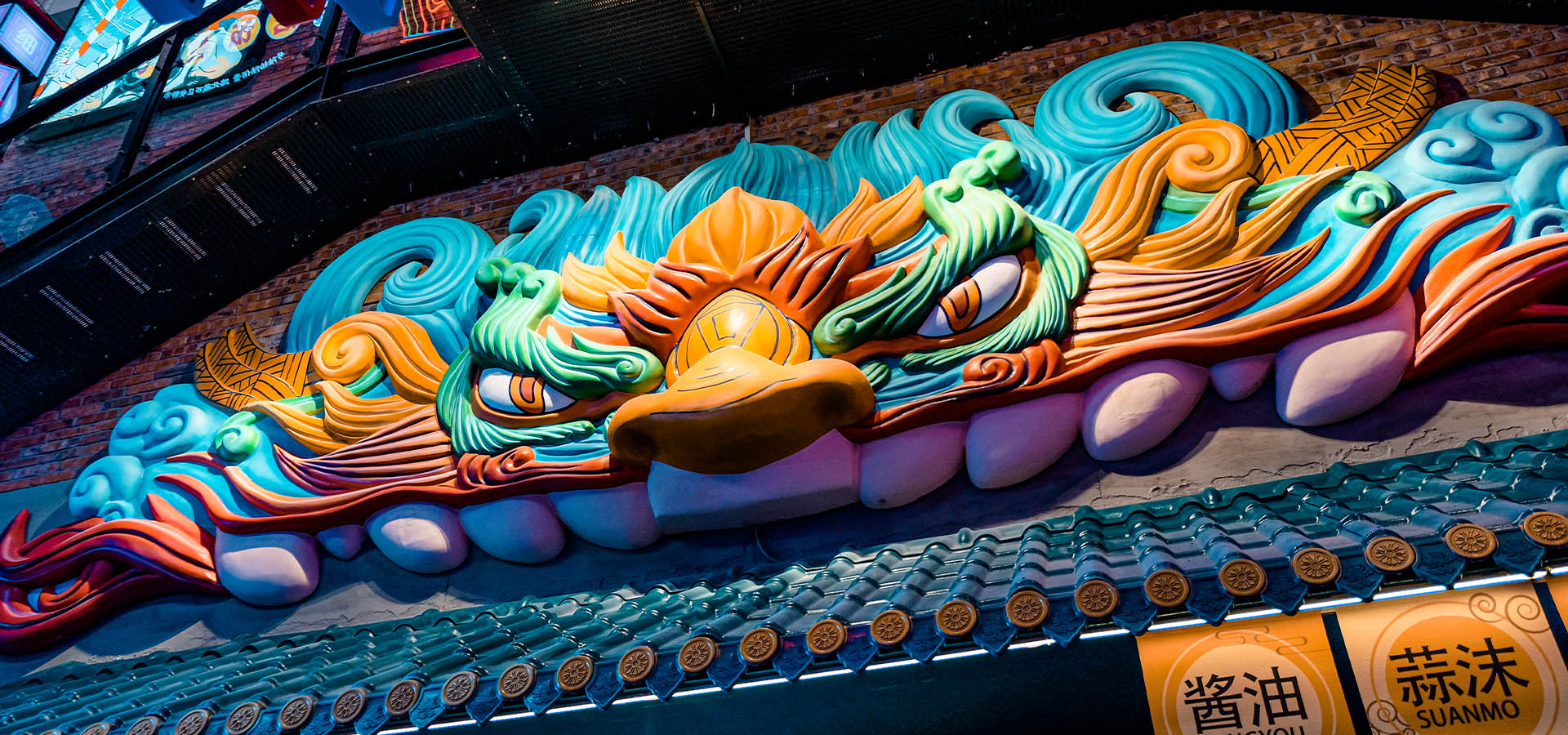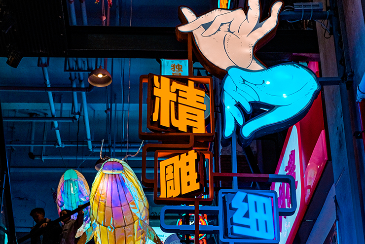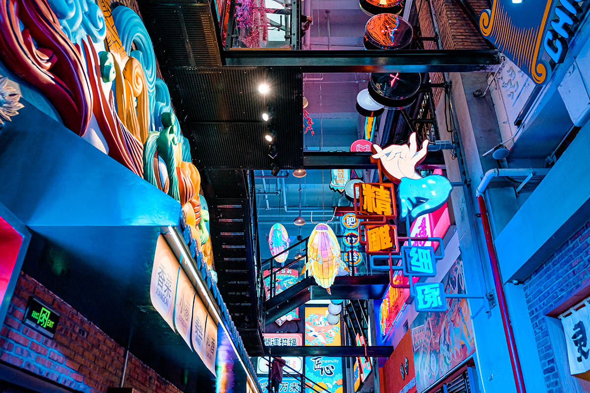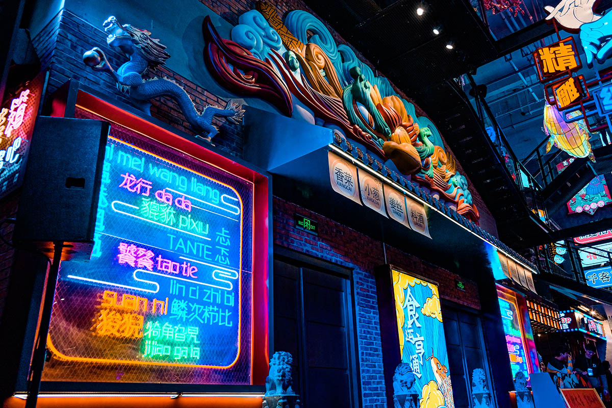 上海靜安大悅城,因獨(dú)特的屋頂摩天輪成為了魔都愛(ài)情城市地標(biāo),此次針對(duì)上海靜安大悅城霓虹街和未央街的改造升級(jí),將會(huì)引領(lǐng)購(gòu)物中心主題街的新的潮流風(fēng)向標(biāo)。我們引用饕餮、錦鯉等擁有中國(guó)文化烙印的元素,用藝術(shù)化手法將其形象有機(jī)的與空間結(jié)合在一起,打造了多個(gè)擁有非常奇幻色彩的全新節(jié)點(diǎn)。并且多維立體的將整個(gè)空間做了規(guī)劃,圍繞著夜間經(jīng)濟(jì)的消費(fèi),做了大量的氛圍提升。