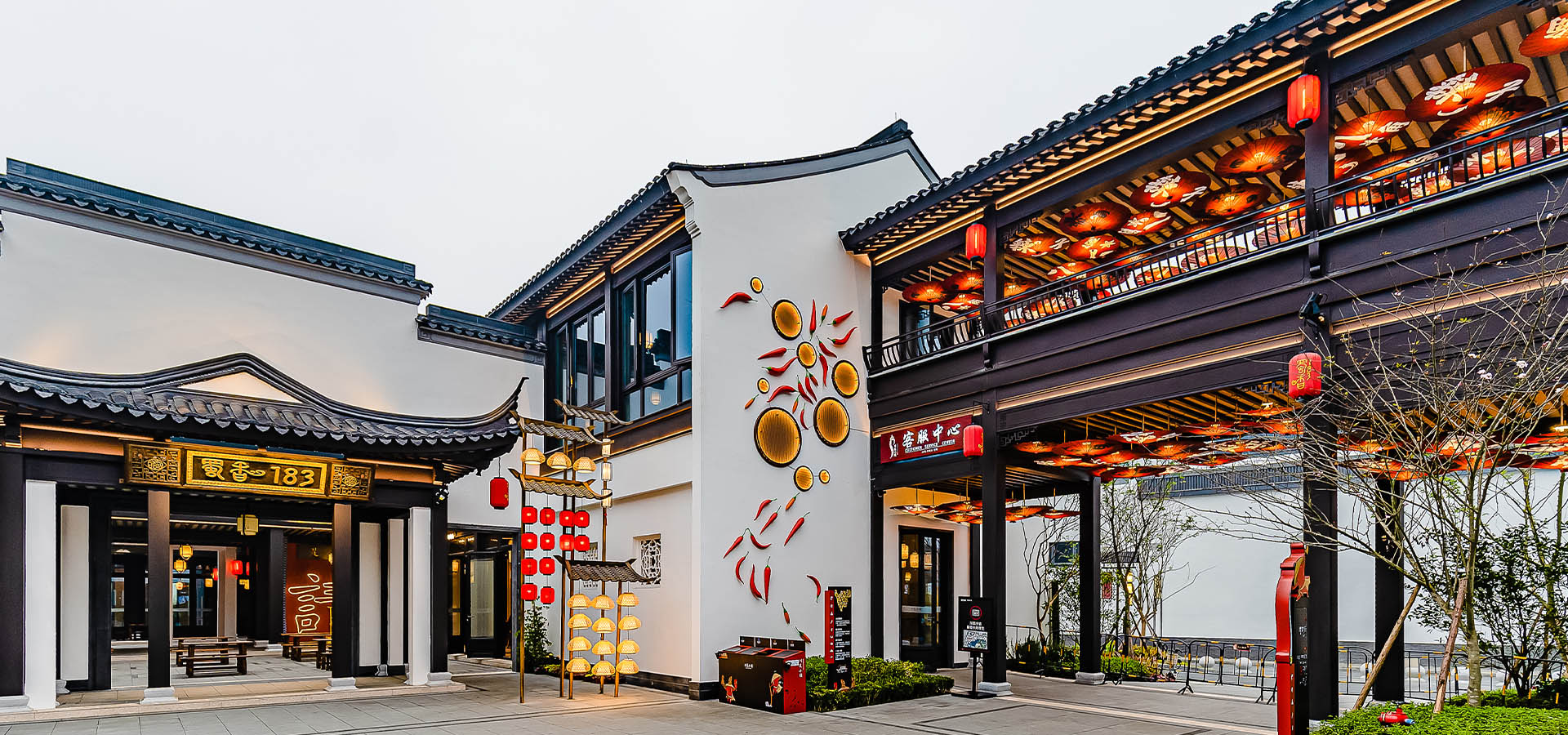 項目所在地是美食之都——成都郫縣,郫縣豆瓣醬更被譽為“川菜之魂”。在對于傳統(tǒng)元素的解析和提取過程中,風潮設計團隊選定了最具代表性的“七滋、八味、九雜”作為串聯(lián)符號進行演繹,通過對川菜精神的形象展示,體現(xiàn)更具代表性的四川人文精神,進而彰顯成都“承千年天府之文脈,受萬里泯江之潤澤”和川菜小鎮(zhèn)“一日食遍蜀香味”的內核。